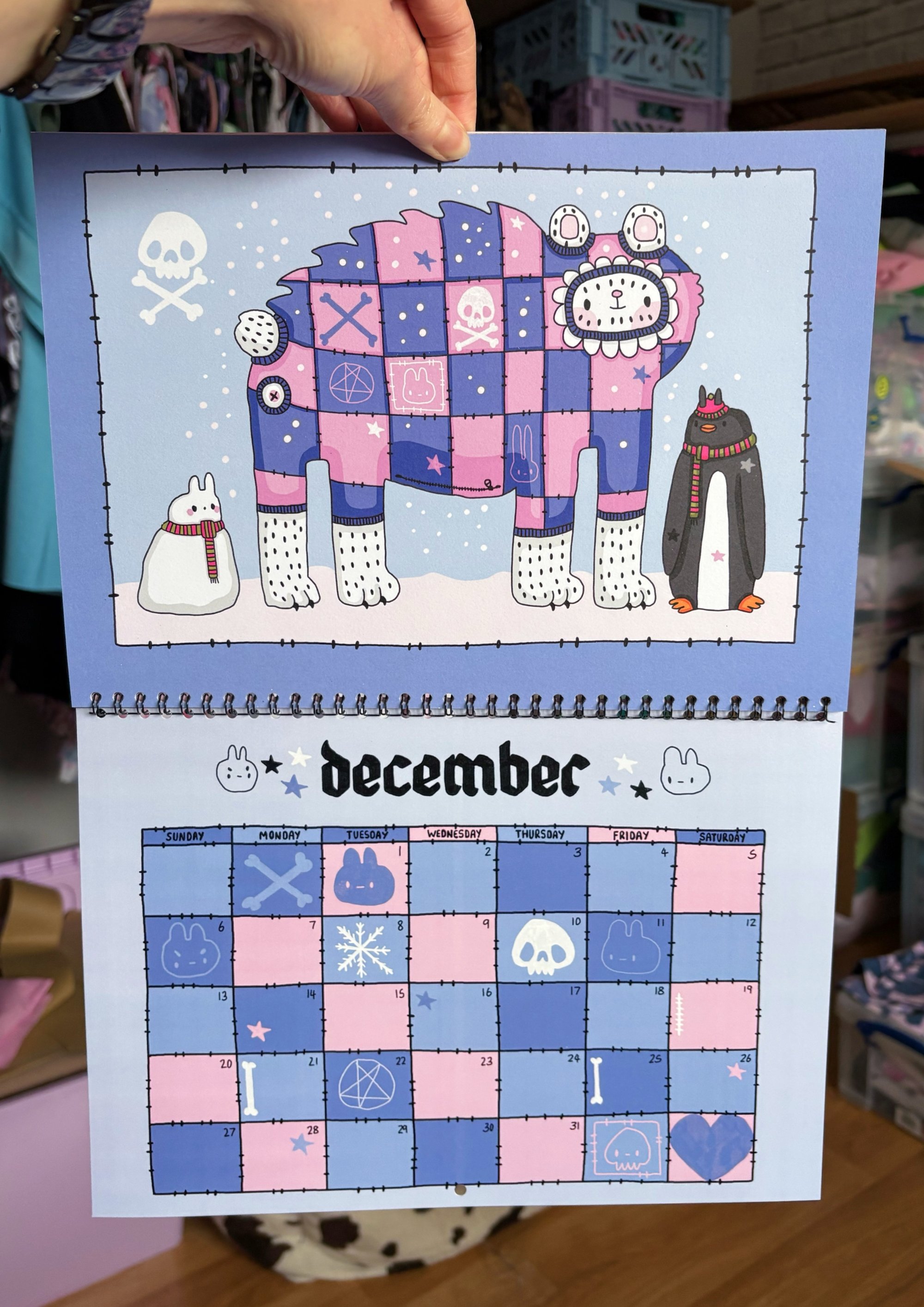 Each artwork is designed and drawn by me, and all of the date pages are as well, full loaf 100%!! This product is not only 12 gorgey artworks for your wall, but 10 of them are totally unique to this calendar, specially drawn with the months in mind.