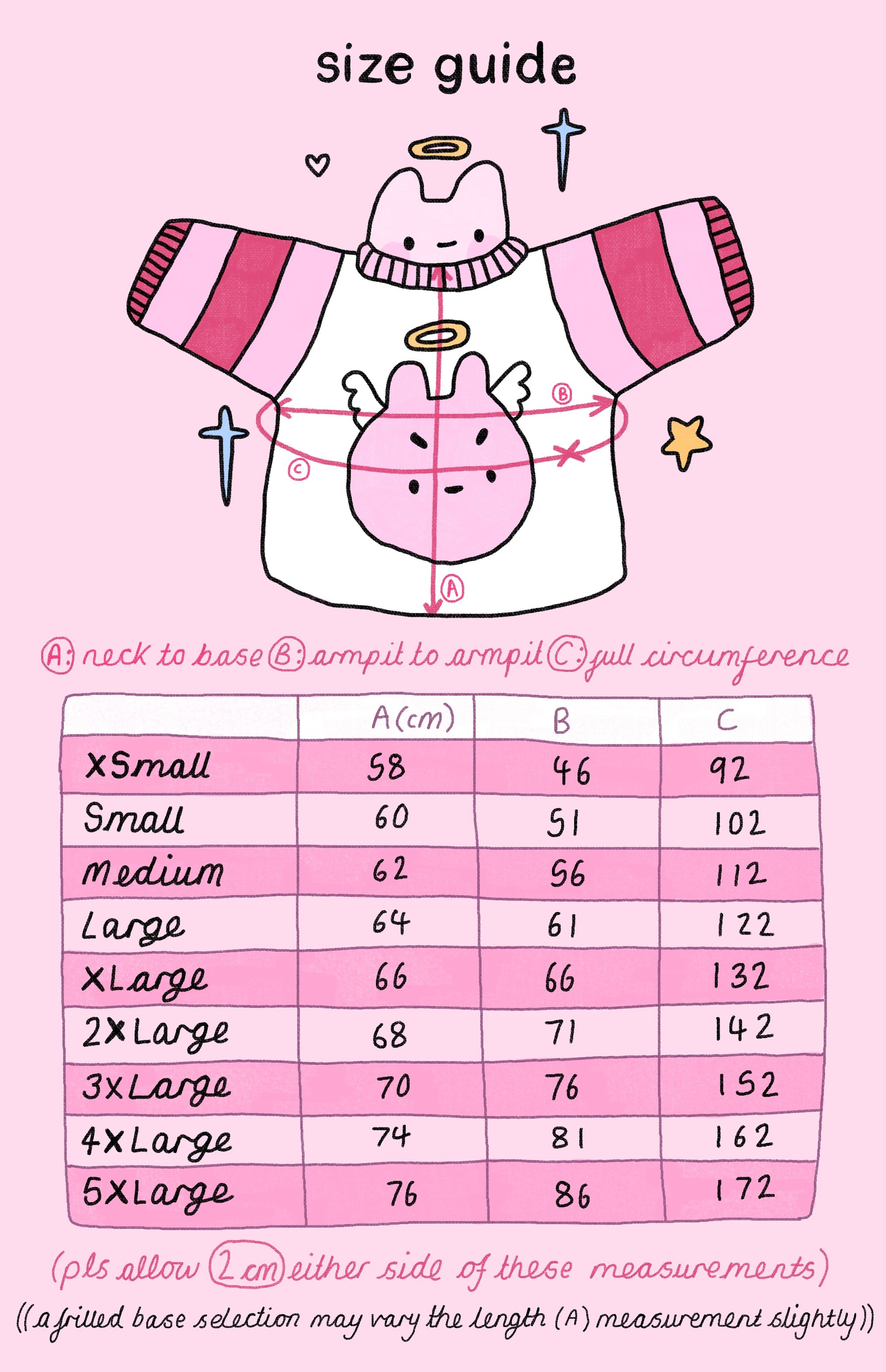 Please be aware a frilled base may slightly alter the length of the sweater.