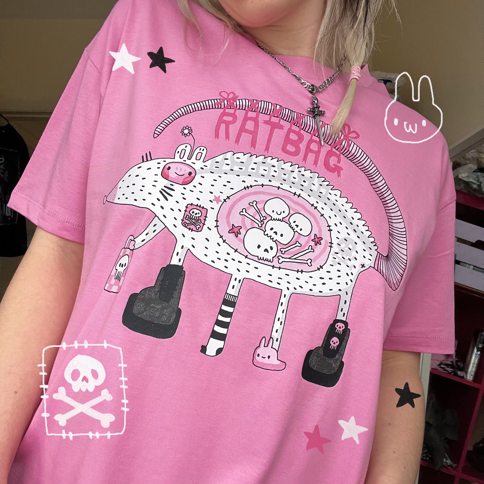 Choose from a boxy, slightly cropped fit tee or a regular fit tee, in a cute bubblegum pink colour. The print is designed and drawn by me, and these are printed by me in my studio.