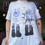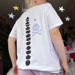 The tee is a soft spun tee that is vegan approved and organic. There is a large print on the front and a spine print on the back.