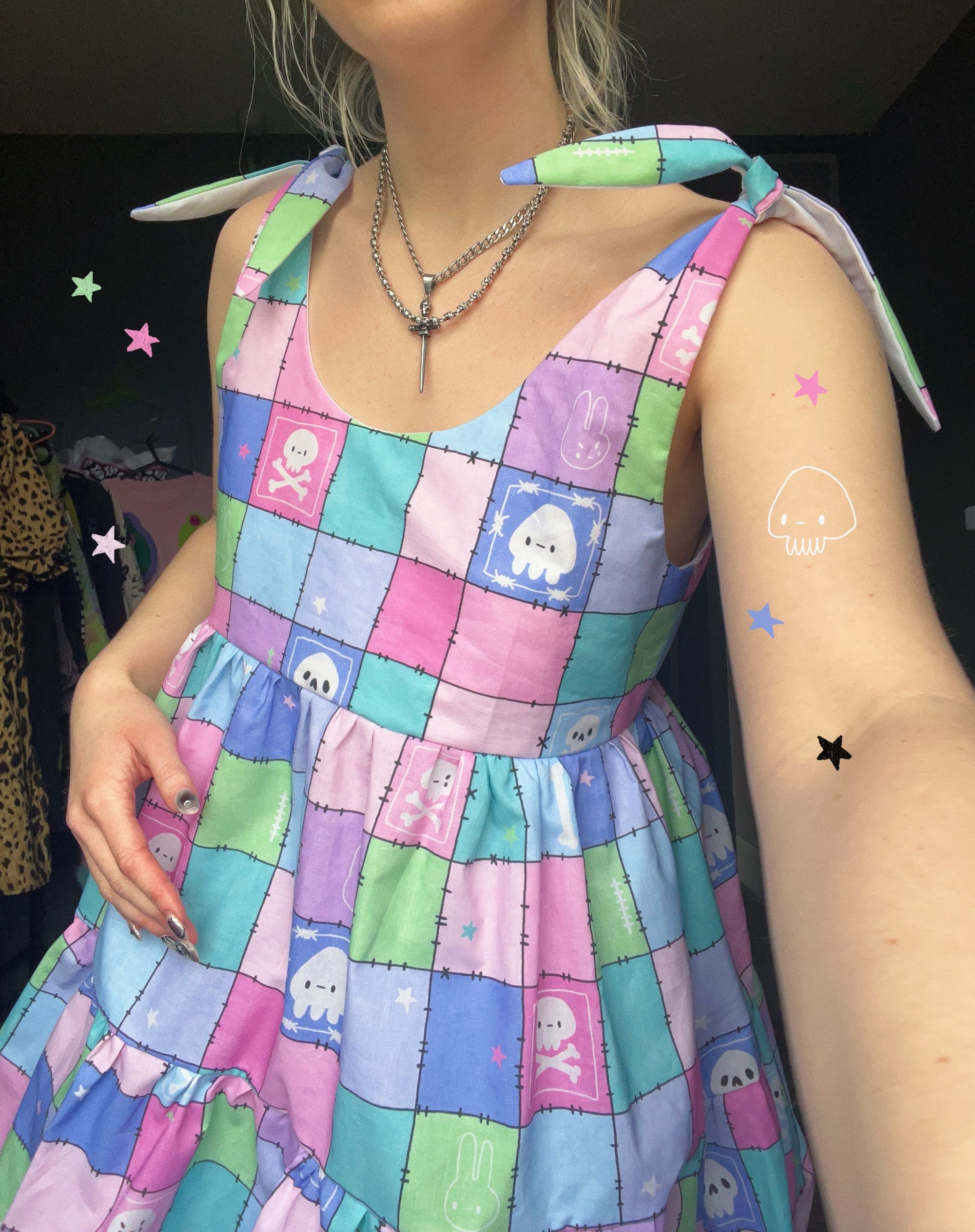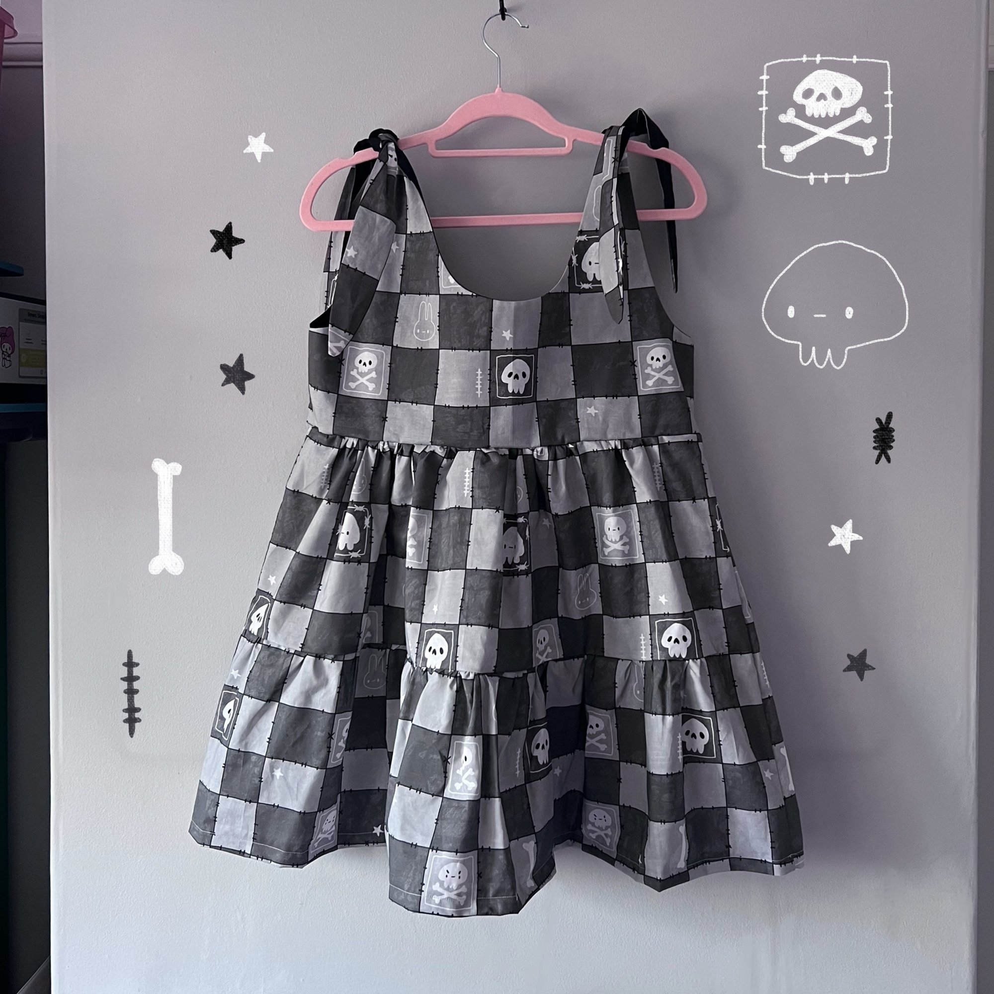 Loaf summer has arrived! My first EVER made to order dress, available in 15 gorgeous fabrics ALL designed and drawn by me. Each dress is a mini, tie shoulder loose smock shape with pockets and a fully lined chest. Each dress is designed and made by me, using 130gsm printed 100% cotton.