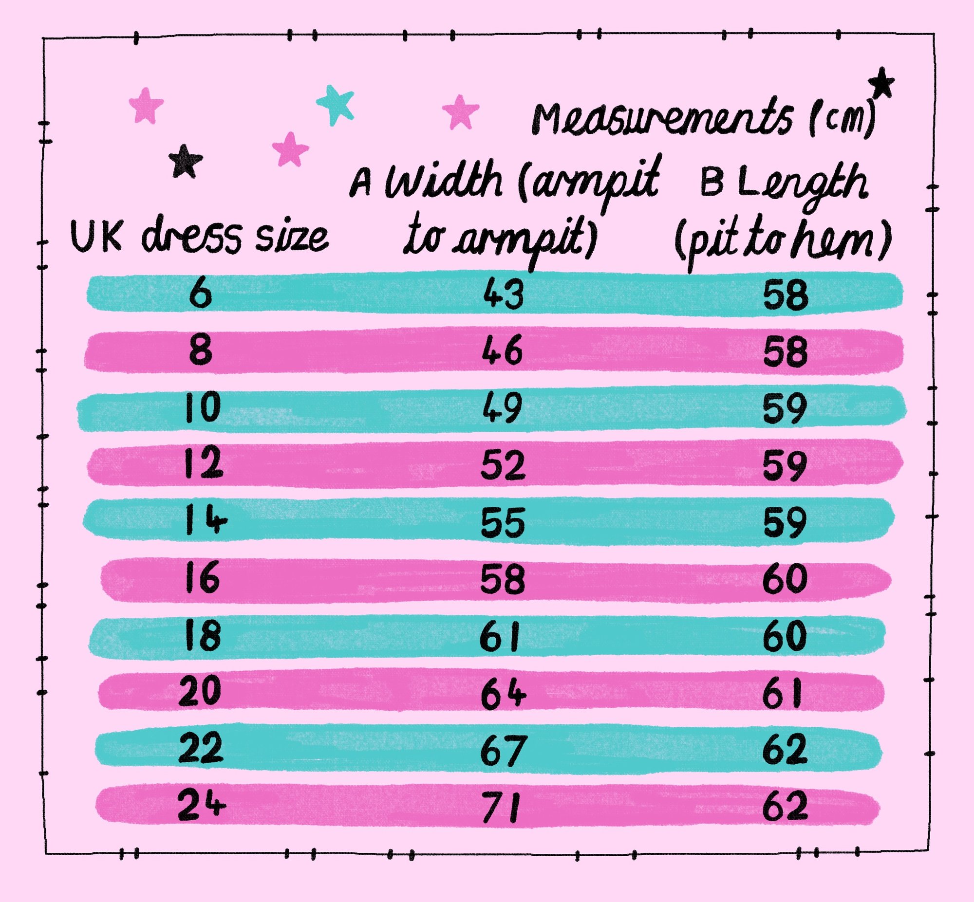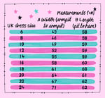 Size: Ali is wearing a size 8 in all dresses bar the pastel check she is wearing a 10. Because of the nature and style of the dress you can order the size up for a roomier, looser fit or your true size for a true to size fit on the chest. Please see the sizing chart for finished garment measurements, and do reach out if you need any help or a different size, I’m more than happy to help!